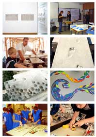 In Workshops mit Kindern und Jugendlichen werden Gestaltungsprojekte für Schulen, Kindergärten und öffentliche Plätze geplant und realisiert. Neben der Gestaltung werden von den jungen Teilnehmern auch die Materialmuster entwickelt, um so auch an der handwerklichen Umsetzung beteiligt zu sein.